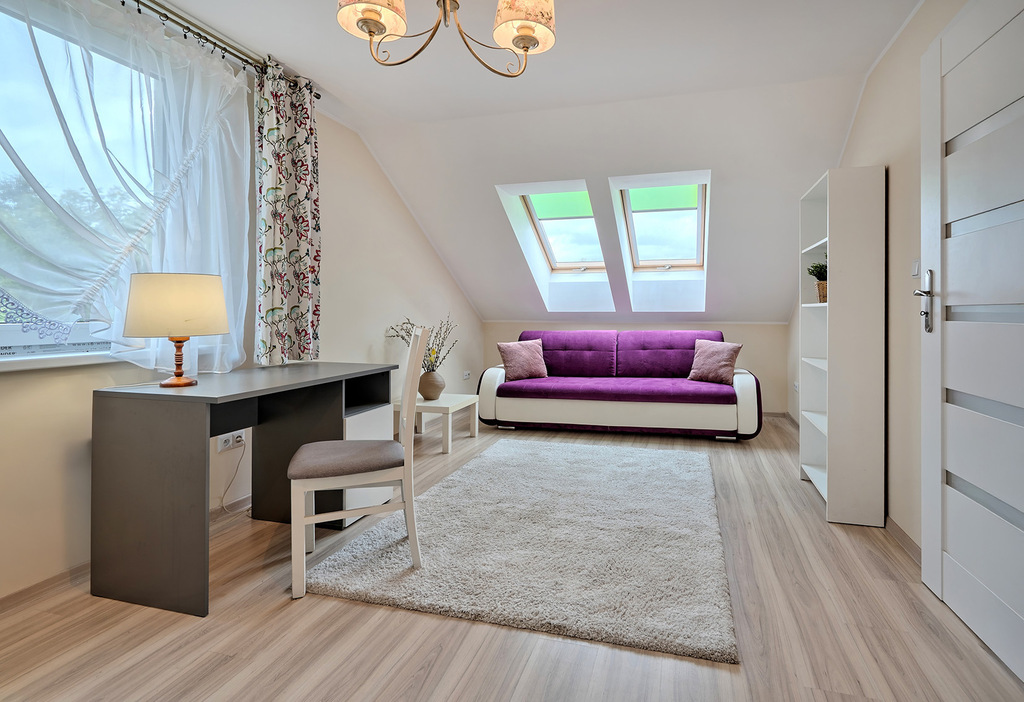 - sypialnia (pow. ok. 18 m2) z kanapą z funkcją spania,