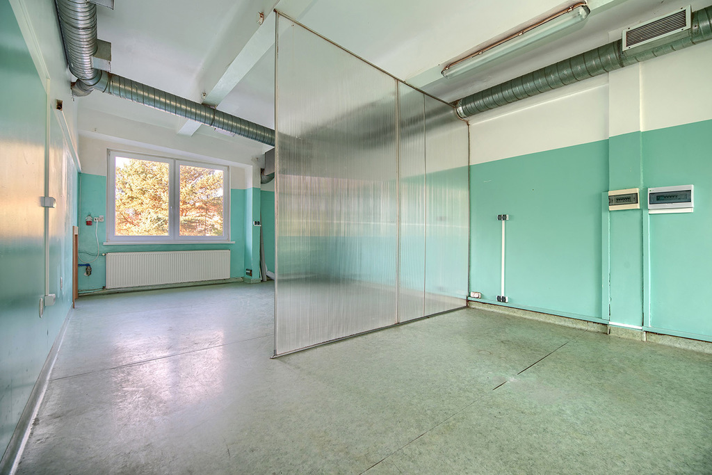 - Hala laboratoryjna (92,3 m2- z niniejszej powierzchni zostały wydzielone trzy odrębne pomieszczenia o pow. ok. 53 m2, 20 m2 i 12 m2 oraz komunikacja o pow. 7 m2)