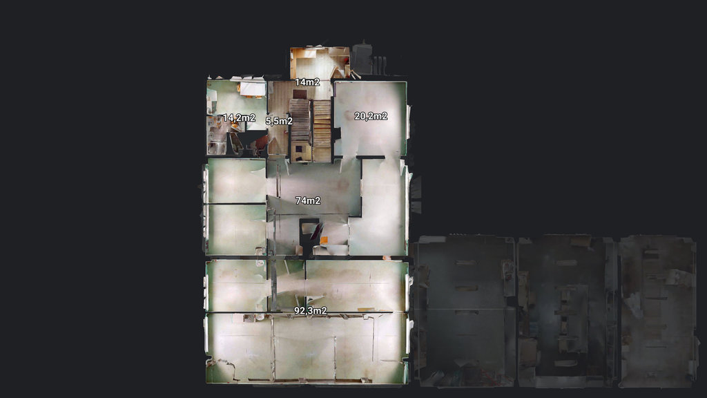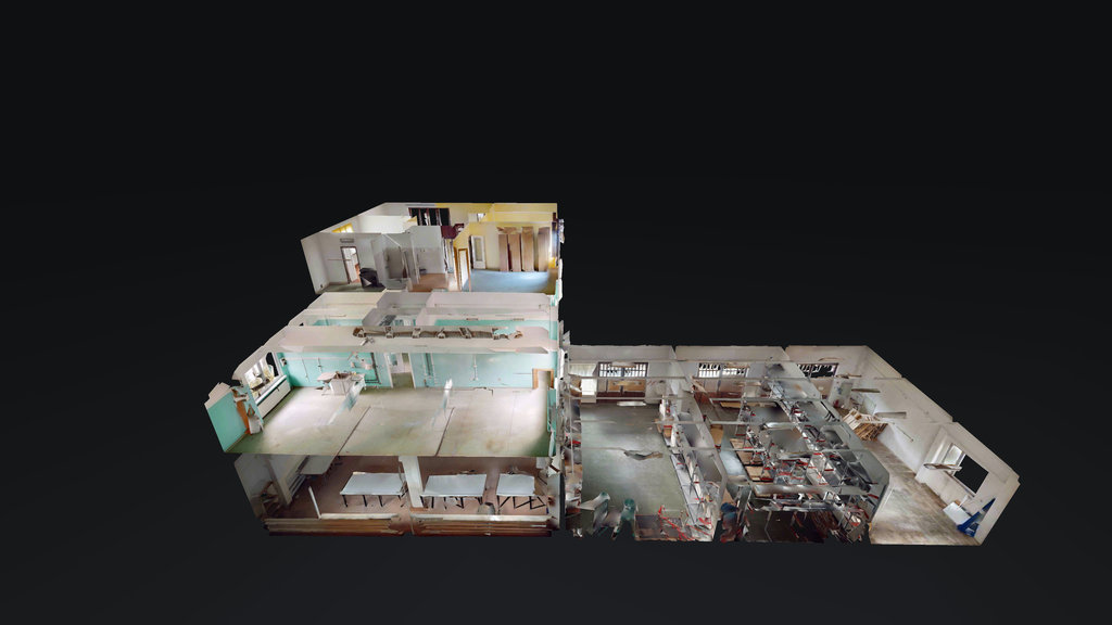 - Hala laboratoryjna (74,0 m2- z niniejszej powierzchni zostały wydzielone trzy odrębne pomieszczenia o pow. ok. 10 m2, 11 m2 i 19 m2 oraz komunikacja o pow. ok. 34 m2, w której znajduje się winda)