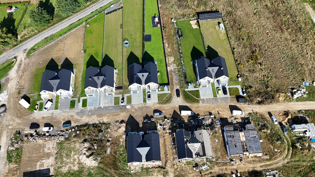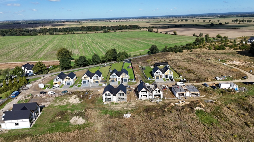 JAKI JEST STANDARD?Domy są w stanie deweloperskim charakteryzują się wysokim standardem wykończenia. Posiadają pompę ciepła i ogrzewanie podłogowe. Wyposażone są w trzyszybowe okna PCV w kolorze ciemnografitowym zew., wew. kolor biały oraz elektryczne rolety zewnętrzne. Strefa dzienna o powierzchni 29,72 m² obejmuje przestronny salon, doświetlony z dwóch stron, domy posiada trzy sypialnie, łazienkę i dodatkową toaletę. Są przygotowane pod instalację alarmową, monitoring. Taras z wyjściem z salonu oraz duży, zielony ogród zwiększają funkcjonalność. Podjazd i taras wykończony kostką brukową, ogrodzenie działki wykonane z paneli systemowych ogrodzeniowych w kolorze antracyt.