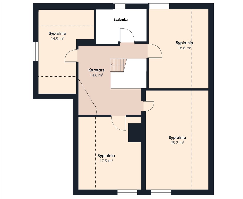 PIĘTRO (Strefa Prywatna): Cztery jasne i ustawne sypialnie oraz druga łazienka, zapewniające komfort całej rodzinie.