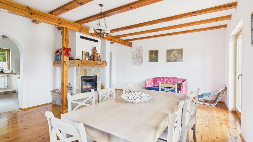 Ogrzewanie: piec na paliwo stałe oraz urokliwy kominek.