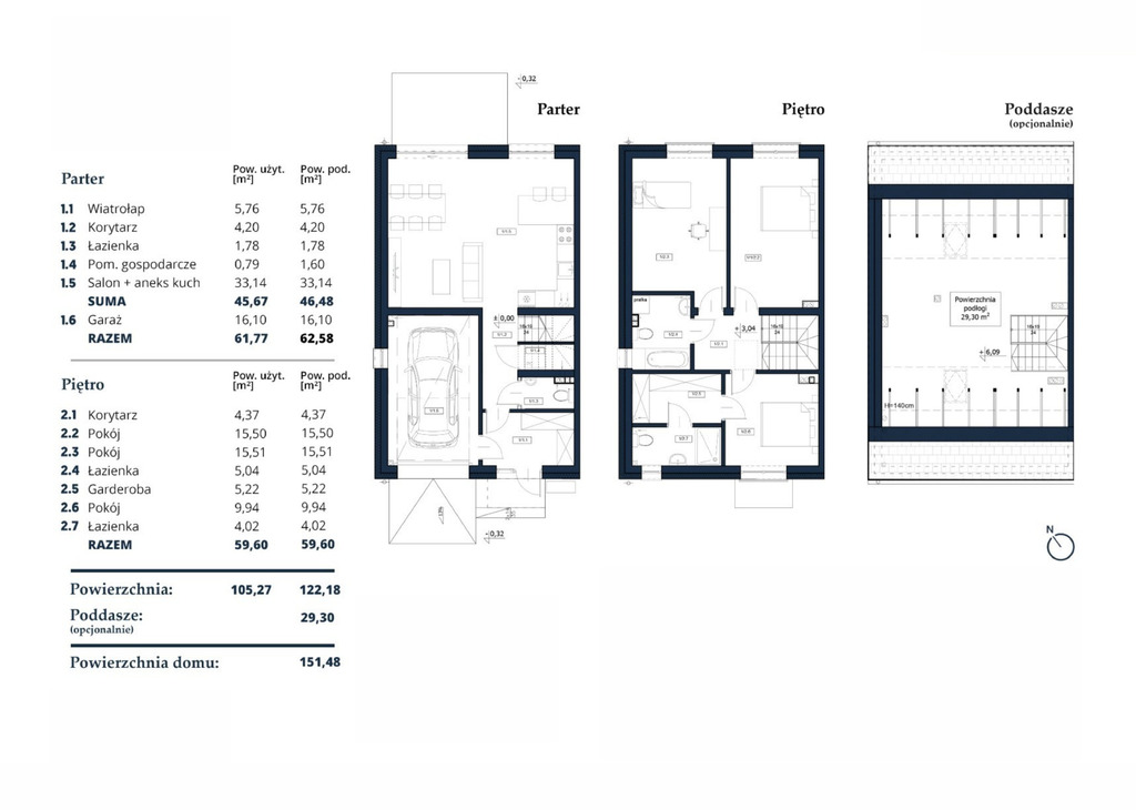 -       garaż z oknem połączony bezpośrednio z parterem oraz dodatkowe, wybrukowane miejsce postojowe,