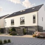 Na sprzedaż nowoczesne i funkcjonalne domy w zabudowie bliźniaczej o powierzchni użytkowej 150,77 m², z ogródkami o powierzchni od 80 m², położone w Iwinach, tuż przy granicy Wrocławia.