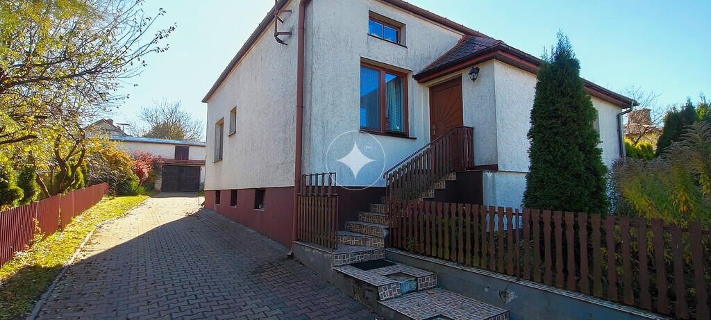 Na posesji znajdują się dwa garaże, a cały teren jest ogrodzony i wyłożony kostką.