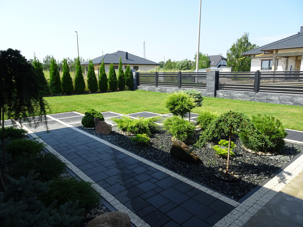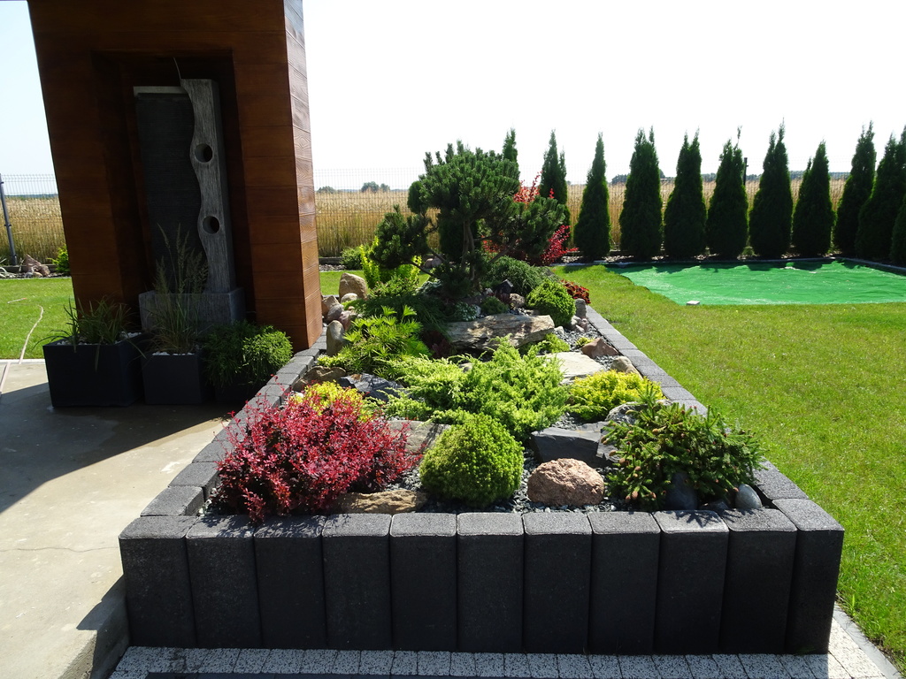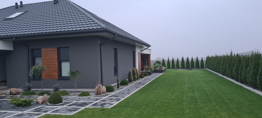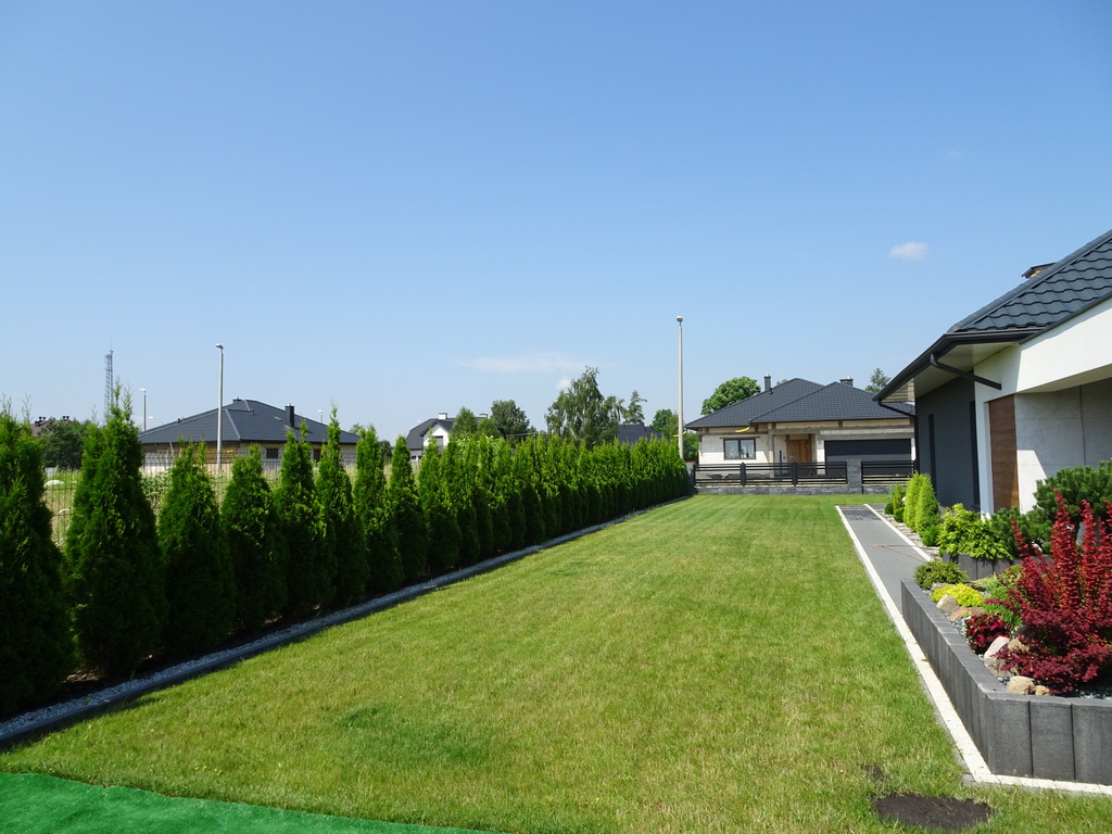 Ogród - zadbany trawnik z nawodnieniem, skalniak, tuje, poza tym piękne nasadzenia.