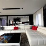 - przestronnego widnego salonu wyposażonego w duże panoramiczne okna,