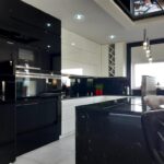 Otwarta kuchnia wyposażona jest w nowoczesny sprzęt AGD najwyższej jakości, zmywarkę, piekarnik, kuchenkę mikrofalową, płytę indukcyjną, ekspres do kawy, podwójną lodówkę z kostkarką do lodu. Wszystkie blaty kuchenne wykonane są z granitu, okap kuchenny jest wysuwany z poziomu płyty grzewczej.