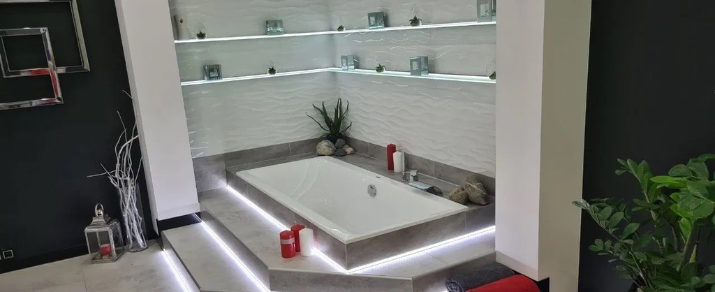 W przestronnej łazience jest komfortowa wanna oraz prysznic. Wszystko wykonane z najlepszych materiałów.