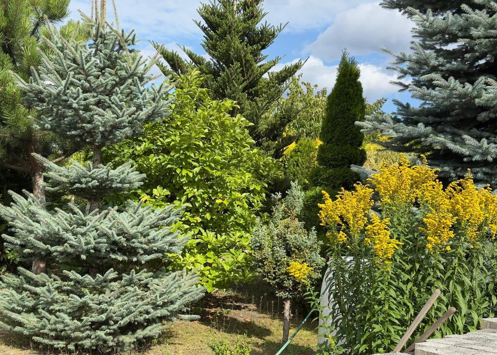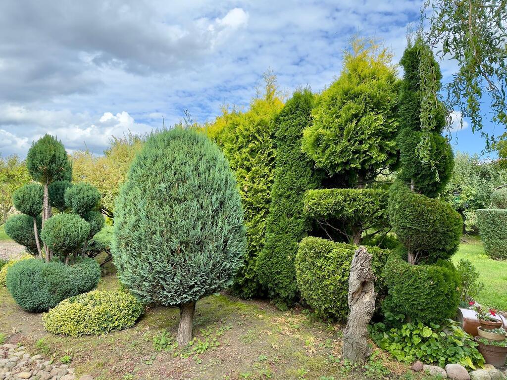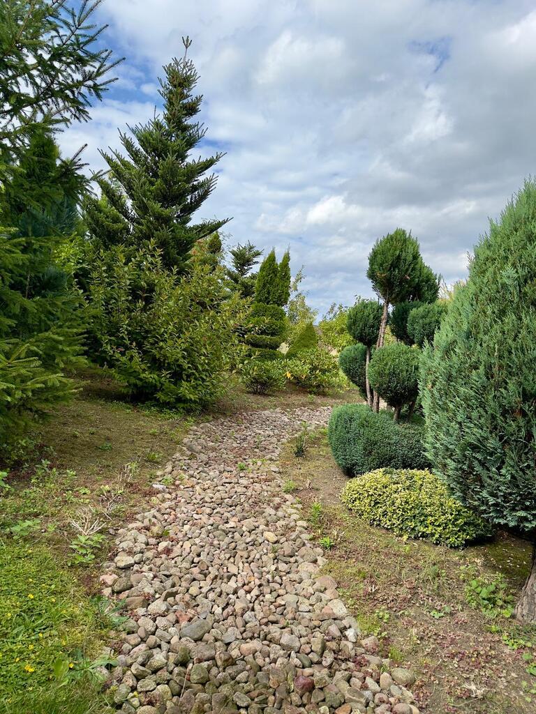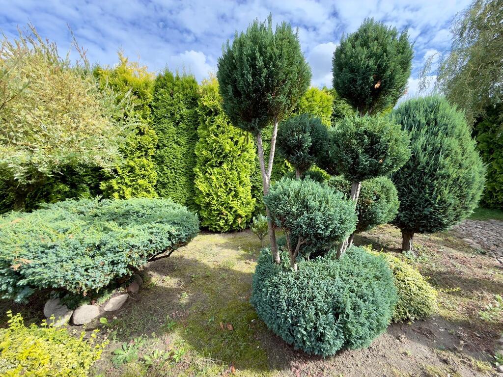 - Piękny, zadbany ogród – dojrzała roślinność: drzewa (także owocowe), krzewy ozdobne, wydzielona część warzywna