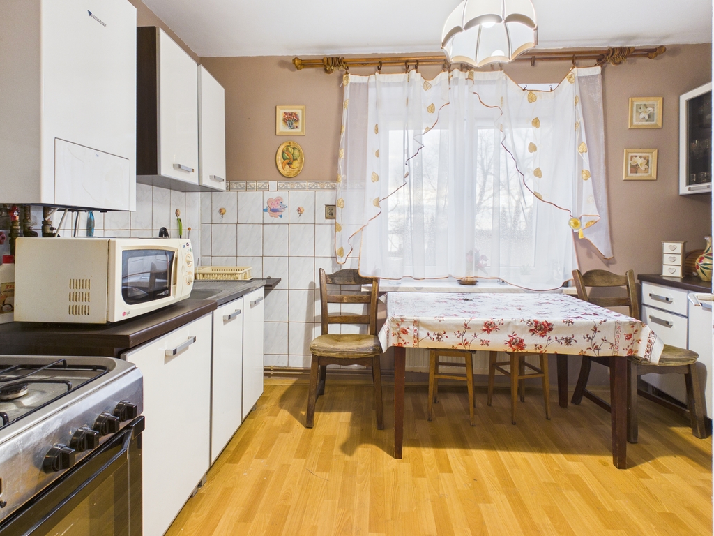 Dom o powierzchni użytkowej około 90 m2 usytuowany jest na działce o powierzchni 1471 m2.