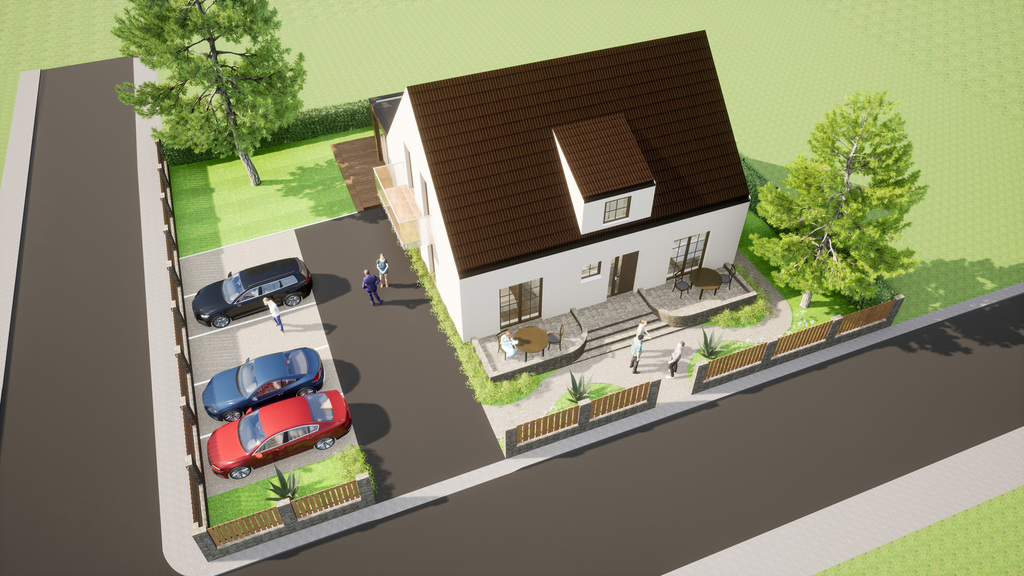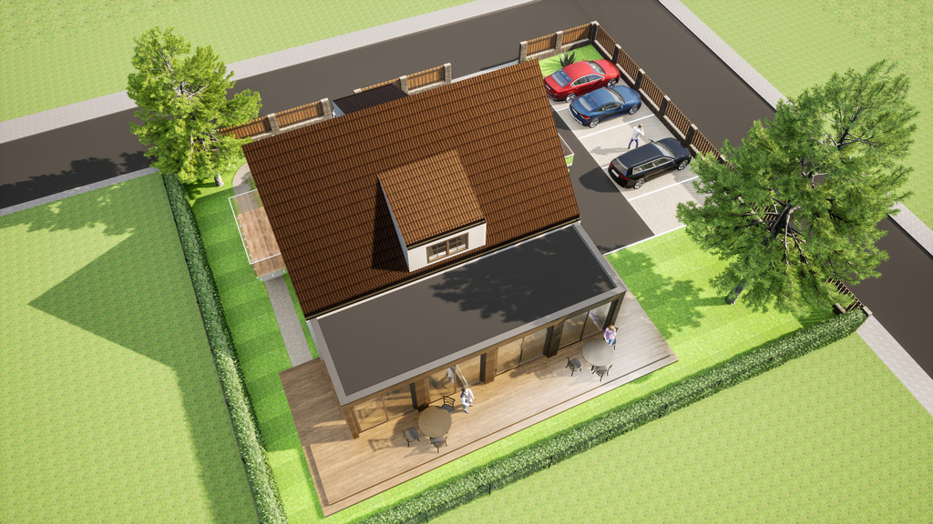 Posiadamy gotową koncepcje remontu oraz otoczenia na działce dzięki czemu zostały wykonane wizualizacje prezentujące całość po remoncie.