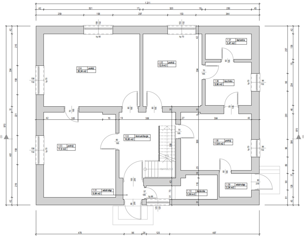 • Poddasze: ok. 87 m² – możliwość aranżacji do 5 pokoi i osobne WC
