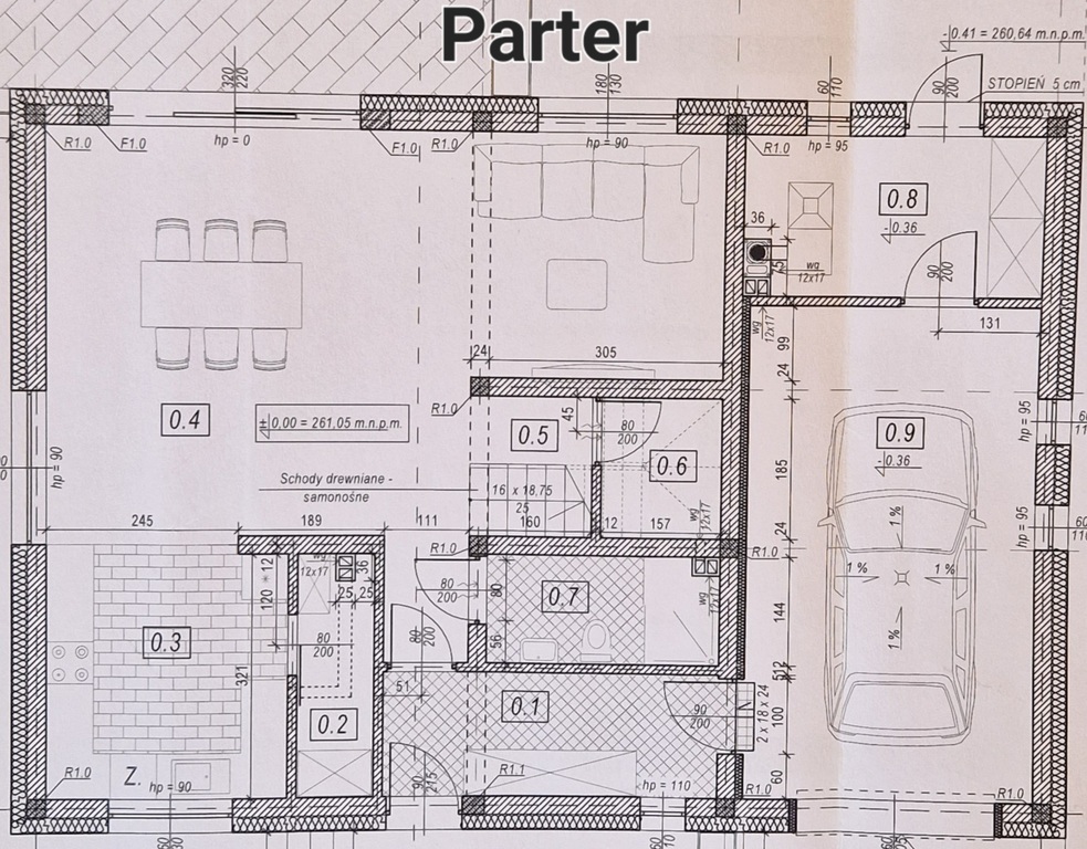 Dom posiada również strych, na który prowadzą schody włazowe ( strych w szczycie-wys. 180 cm )