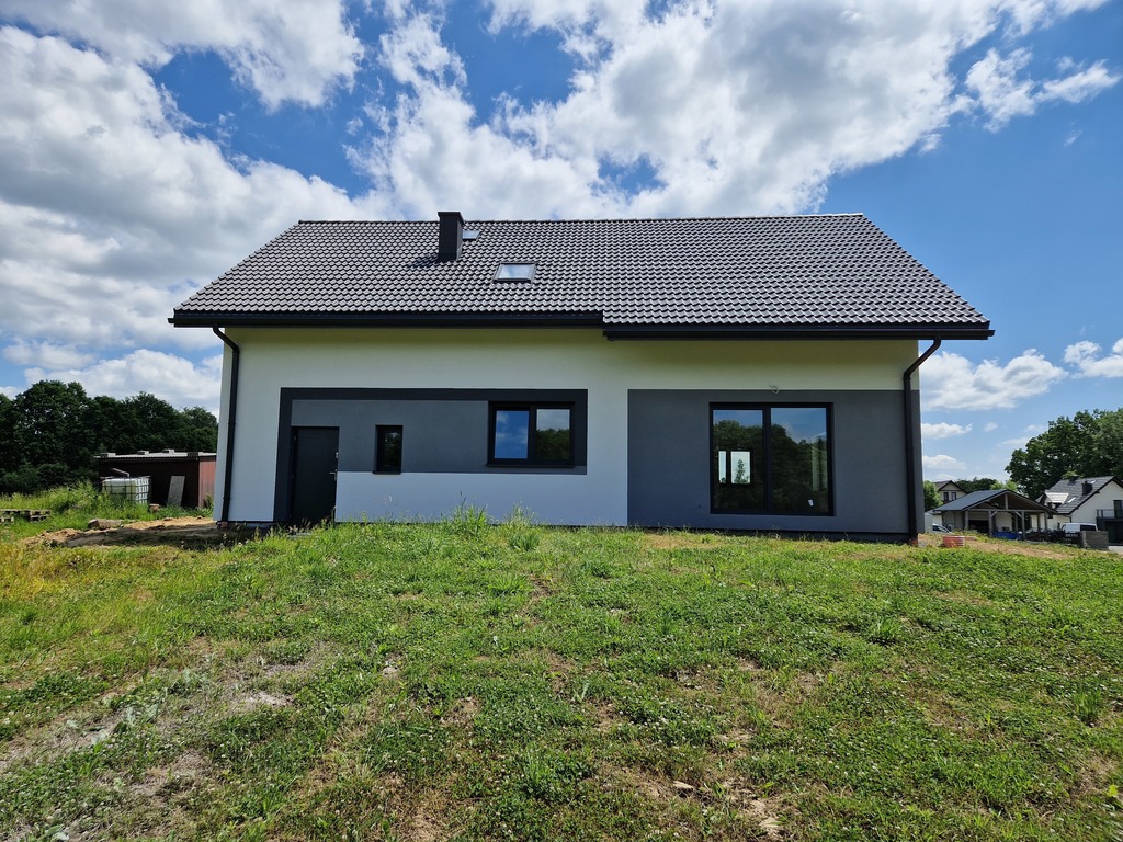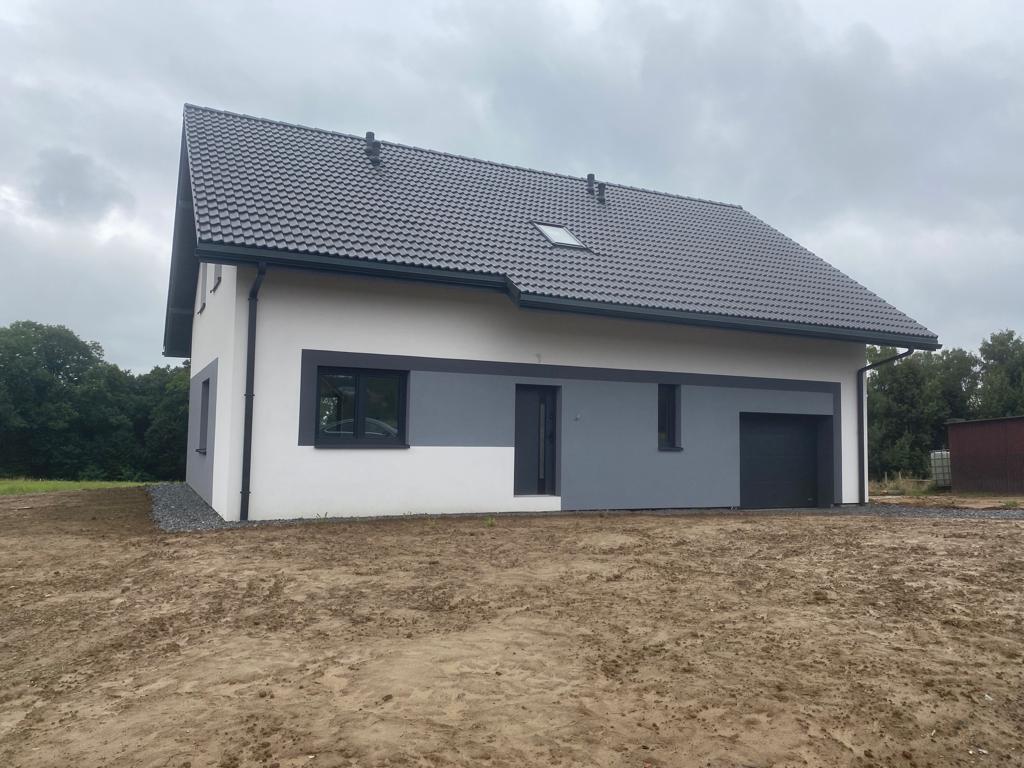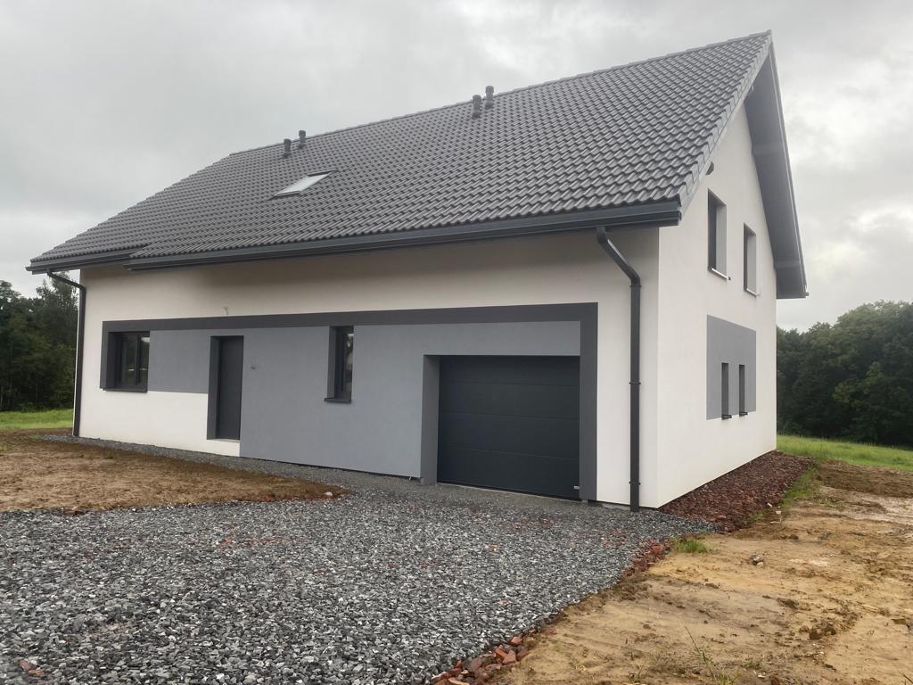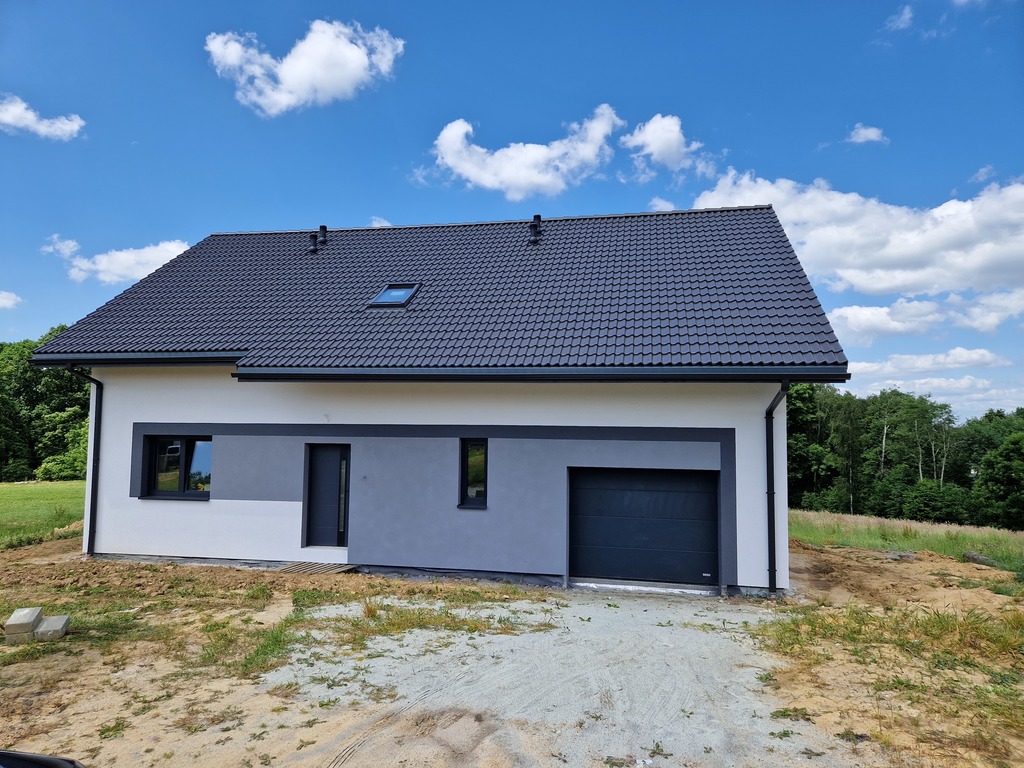 STANDARD: Duże przestronne okna, wylewka na całej powierzchni podłóg, ogrzewanie podłogowe w całym domu, również w garażu. Ściany w całym budynku zostały dodatkowo pokryte gładzią gipsową. Dach pokryty dachówką, założone parapety zewnętrzne-stalowe, drzwi stalowe, media doprowadzone do budynku. Nowoczesne rynny aluminiowe premium w systemie ciągłym (bez łączeń). Dom posiada również rolety antywłamaniowe.