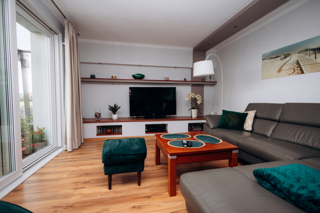 Funkcjonalny układ pomieszczeń zapewnia komfort i wygodę na co dzień. Wnętrze emanuje ciepłem i przytulnością, dzięki czemu od razu poczujesz się jak w domu.