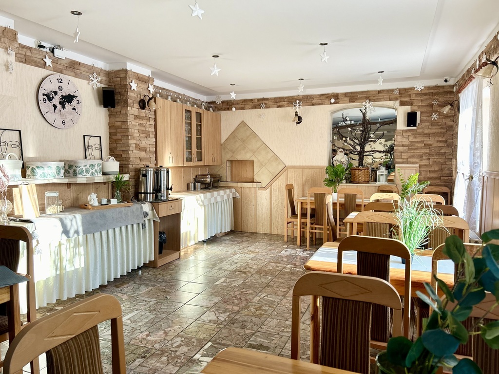 - Znajduje się tutaj też jadalnia z widokiem na ogród i góry oraz całe zaplecze kuchenne ze zgodami Sanepidu.