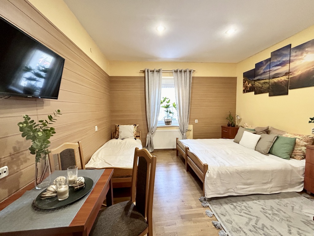 - Jeden typu studio z dwoma sypialniami i łazienką