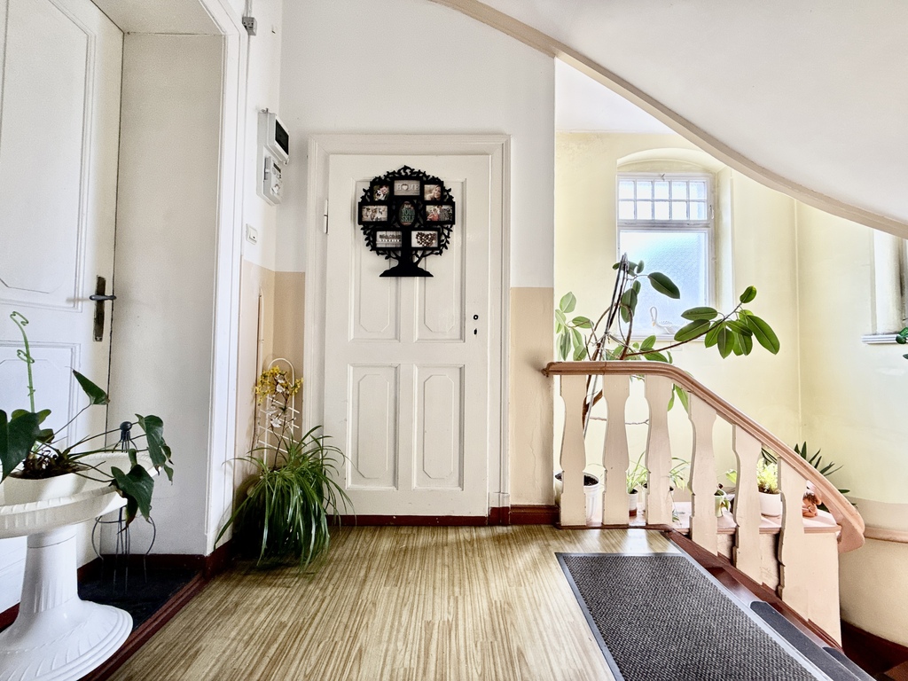 Dom duży, dwukondygnacyjny podzielony na dwa niezależne mieszkania aczkolwiek w każdej chwili można przywrócić pierwotny układ nie rozdzielający kondygnacji. Piękna klatka schodowa ze stylowymi schodami i fontanną przy drzwiach wejściowych, te jeszcze oryginalne, drewniane, dodające niesamowitego klimatu zaraz po wejściu.