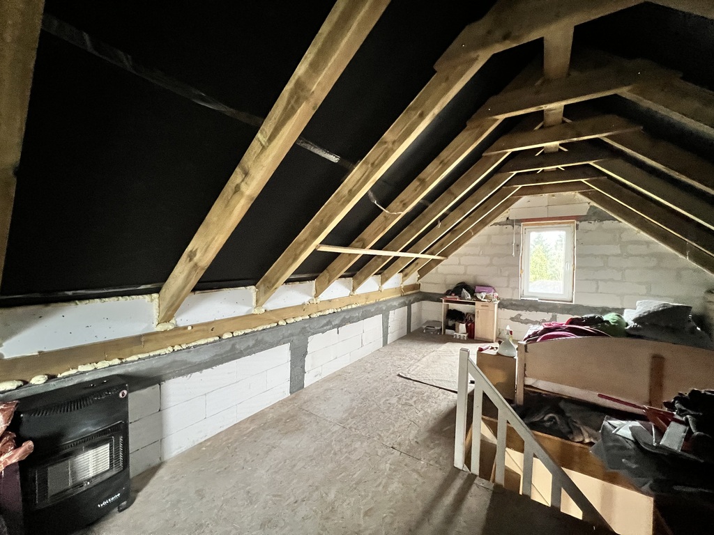 Poddasze: - Poddasze jest w stanie surowym co daje możliwość aranżacji dodatkowych przestrzeni oraz wykończenia według własnych potrzeb.