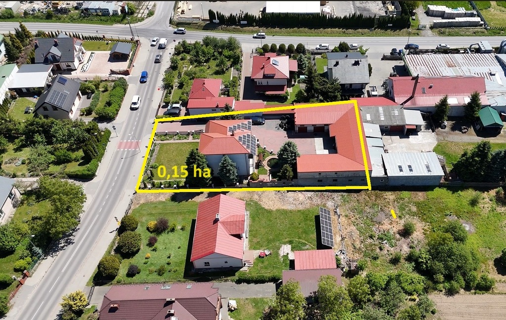 W jej skład wchodzi dom o powierzchni 250 m2 oraz budynki gospodarcze o powierzchni około 300 m2 na działce 1 500 m2 z dużym parkingiem.