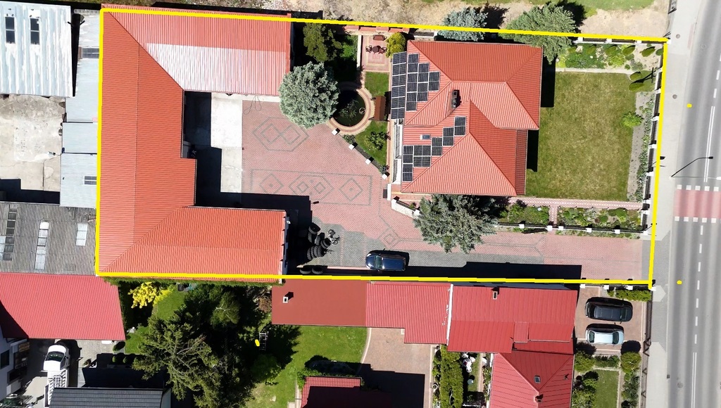 Nieruchomość zapewnia również dużą ilość miejsc parkingowych na bezpiecznej, ogrodzonej przestrzeni.