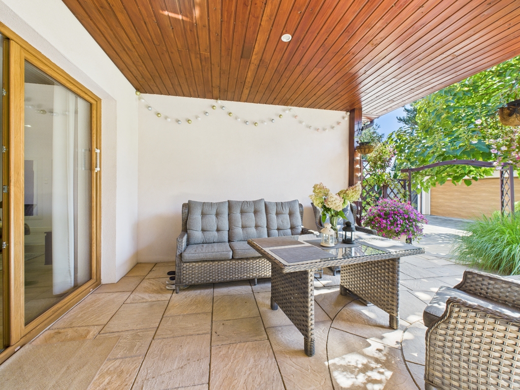 -Taras z podcieniem 40 m2, z widokiem na ogród