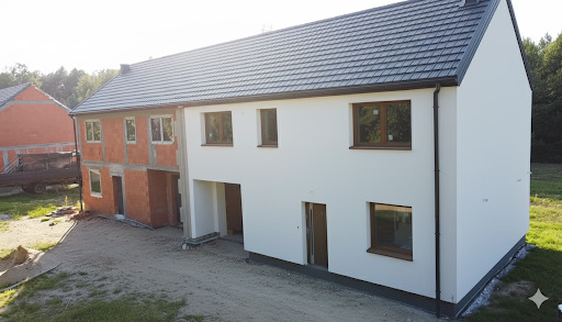 Dodatkowo wykonane podjazd, taras i opaska wokół budynku.