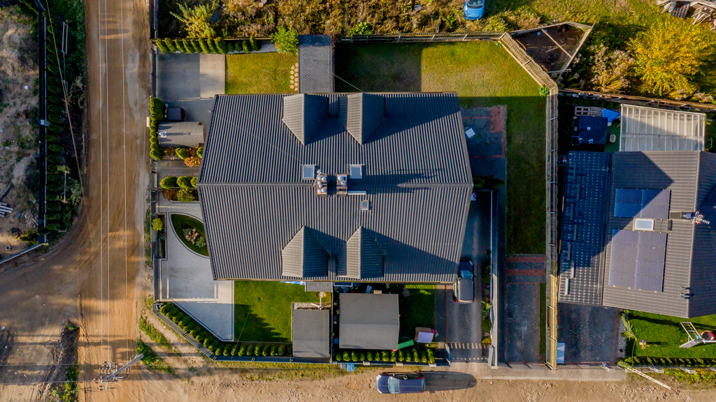 Nieruchomość została zbudowana w 2017 roku z cegły, co gwarantuje trwałość i solidność. Dach pokryty blachą oraz przeciwwłamaniowe drzwi wejściowe zwiększają bezpieczeństwo mieszkańców. Dom posiada również PVC okna, co dodatkowo zapewnia dobrą izolację termiczną i akustyczną.