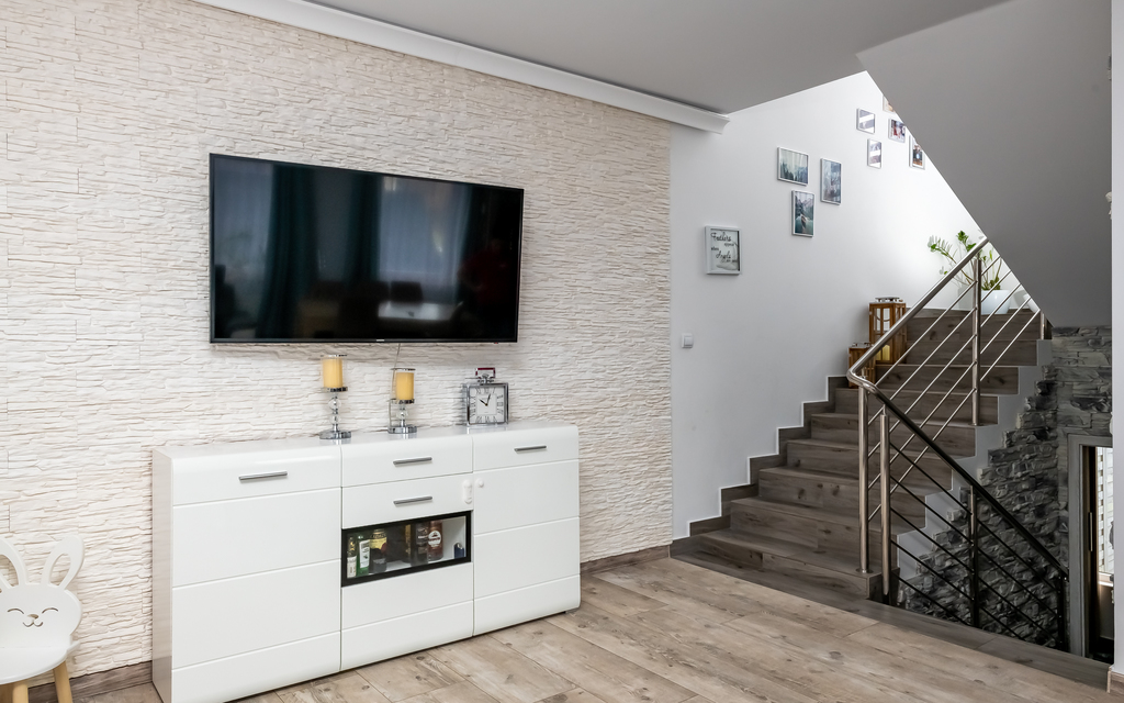 - Piwnica o powierzchni 36,15 m² mieści urządzony pokój, oddzielne pomieszczenie na spiżarnię, toaletę oraz kotłownię. Ten poziom doskonale sprawdzi się jako przestrzeń do przechowywania i dodatkowe miejsce do życia.