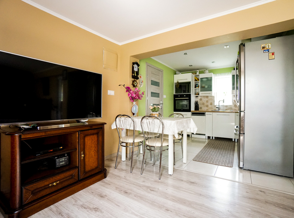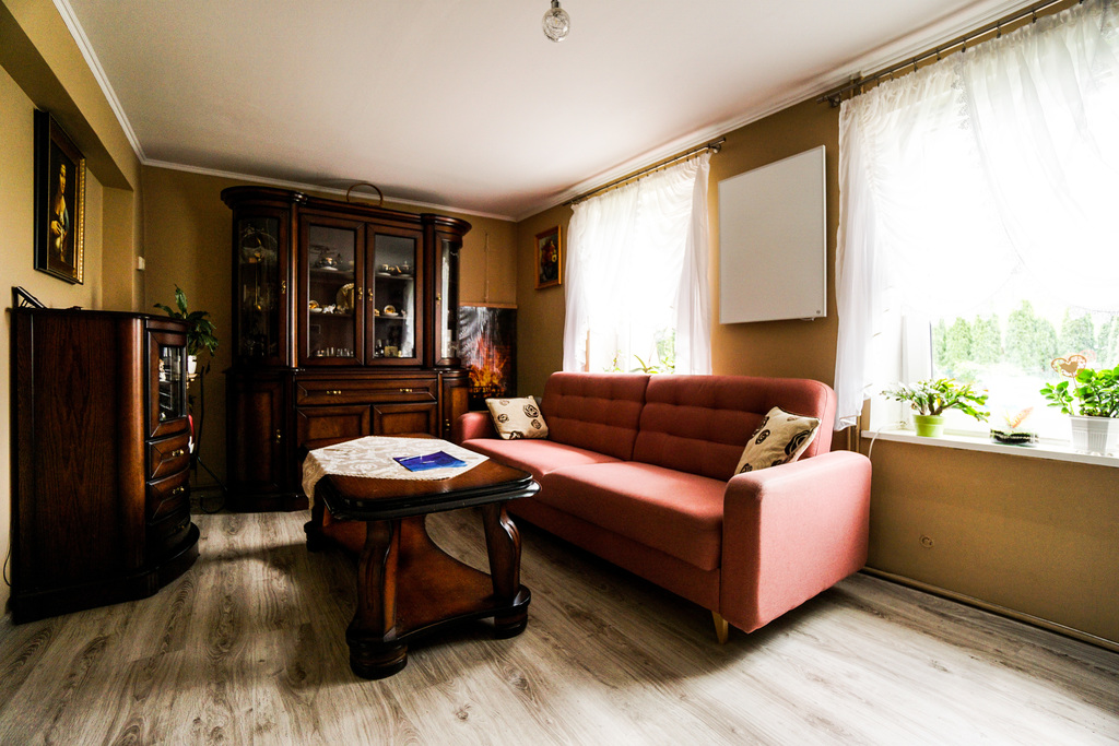 Ogrzewanie elektryczne: podłogowe, grzejniki, piec elektrodowy, panele fotowoltaiczne, piec na eko groszek. Ciepła woda bojler elektryczny o pojemności 400l. Kanalizacja miejska. Okna PCV, na dachu blachodachówka. Dodatkowo własna studnia z pompą wody.