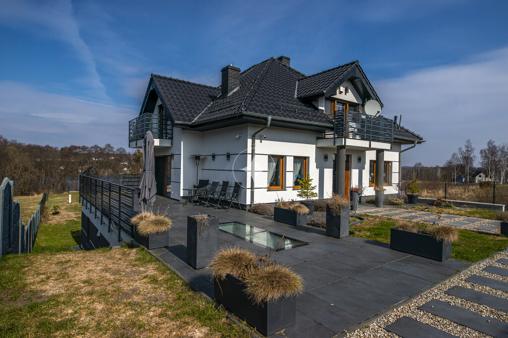 Dom jednorodzinny wolnostojący o powierzchni całkowitej 780m2, posadowiony na pięknie zagospodarowanej działce o powierzchni ok 2982 m², w pierwszej lini brzegowej do jeziora w miejscowości Kolbudy, gmina Kolbudy, województwo pomorskie.