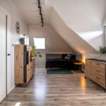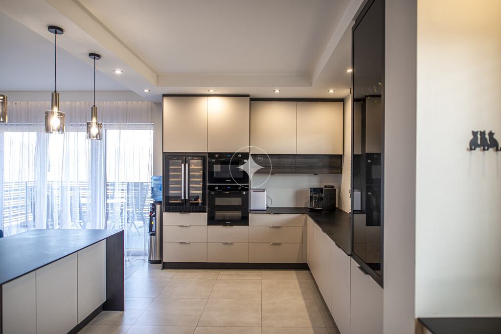 (kuchnia w pełni wyposażona w sprzęt AGD oraz wyposażona w dwa okapy/ odciągi wentylacyjne- co zapewnia lepszą cyrkulację powietrza, meble wykonane z wysokiej jakości płyty EGGER z zastosowaniem niezawodnych okuć marki Blum),
