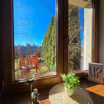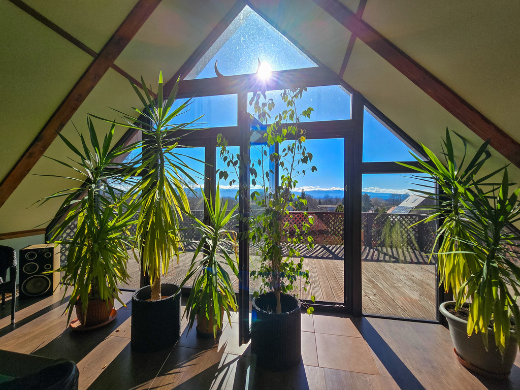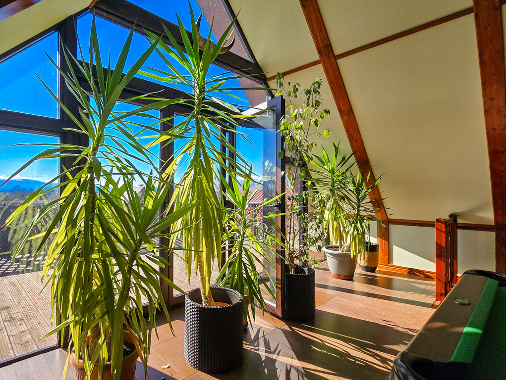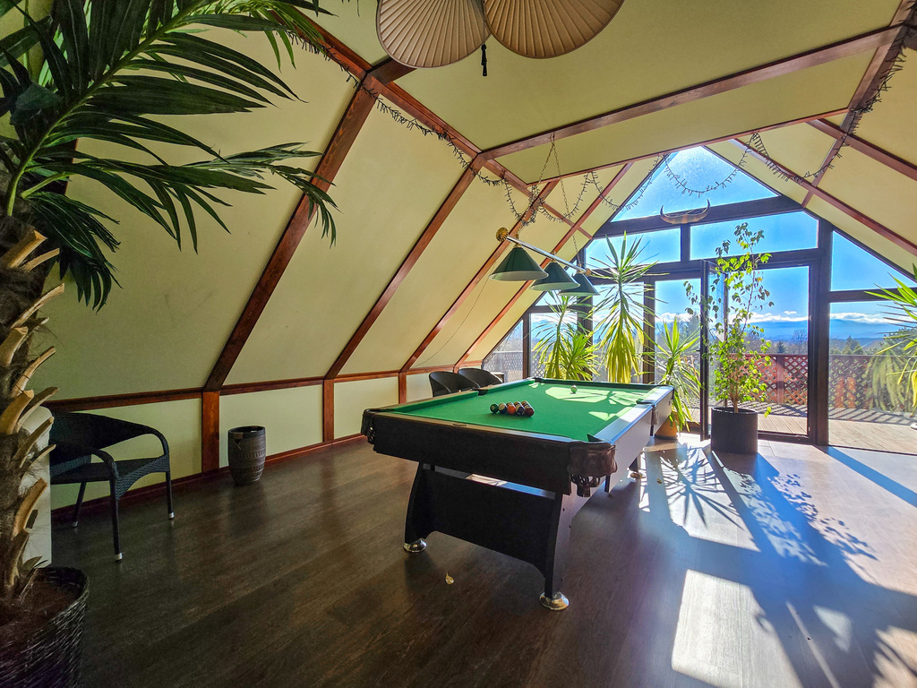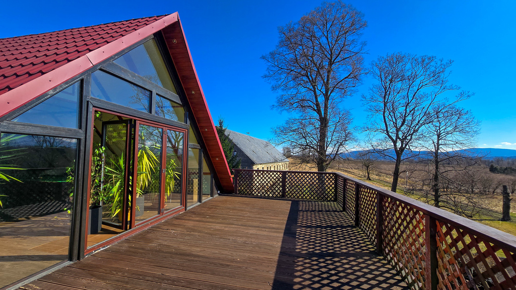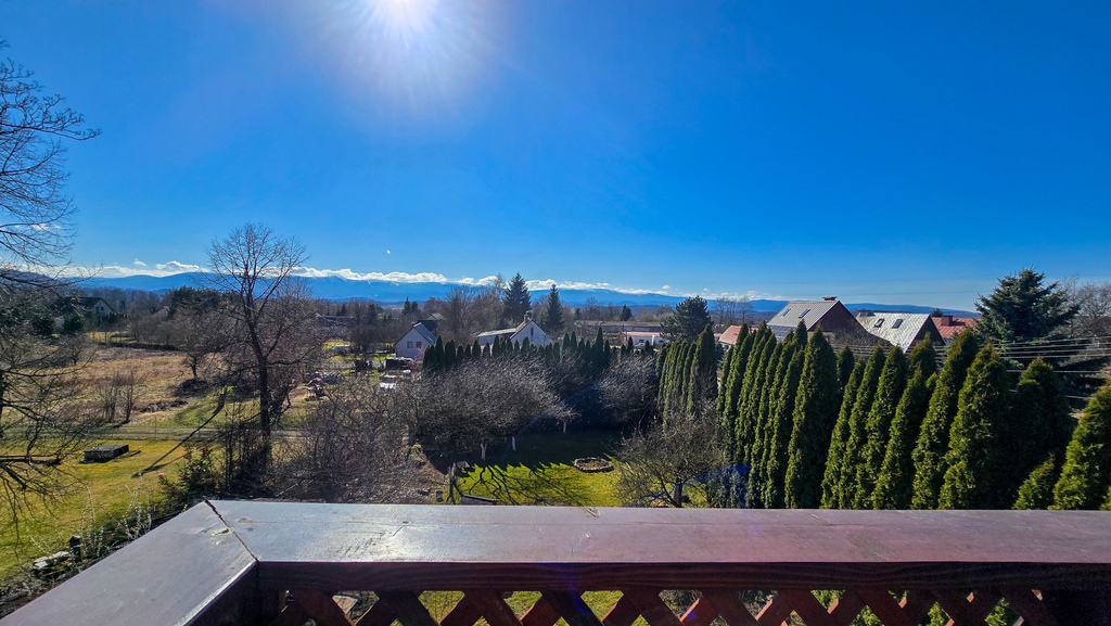 z którego rozciąga się spektakularny widok na panoramę Karkonoszy – idealne miejsce na strefę relaksu, poranną kawę czy wieczorne spotkania z bliskimi.