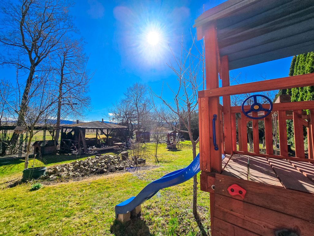Dodatkowym, niezwykle urokliwym elementem działki jest strumień płynący wzdłuż jej granicy (w uregulowanym korycie) Delikatny szum wody tworzy wyjątkową atmosferę spokoju i harmonii, działając kojąco na zmysły i podkreślając naturalny charakter tego miejsca.