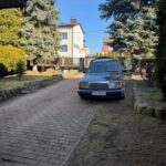Przestrzeń przed domem została estetycznie wyłożona kostką, co zapewnia wygodny wjazd oraz dodatkowe miejsce parkingowe.