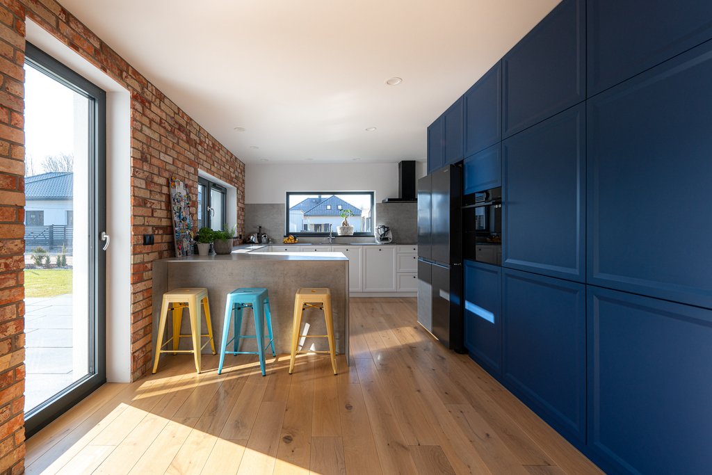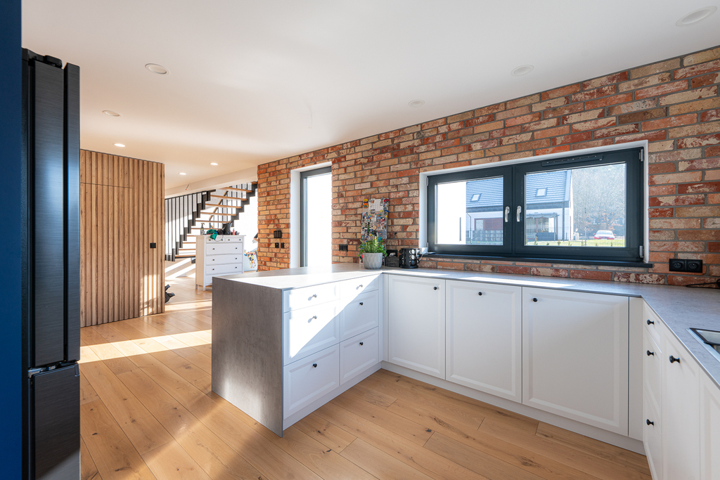 • Kuchnia 19,2 m² – nowoczesna zabudowa, Grohe z filtrem i wodą gazowaną