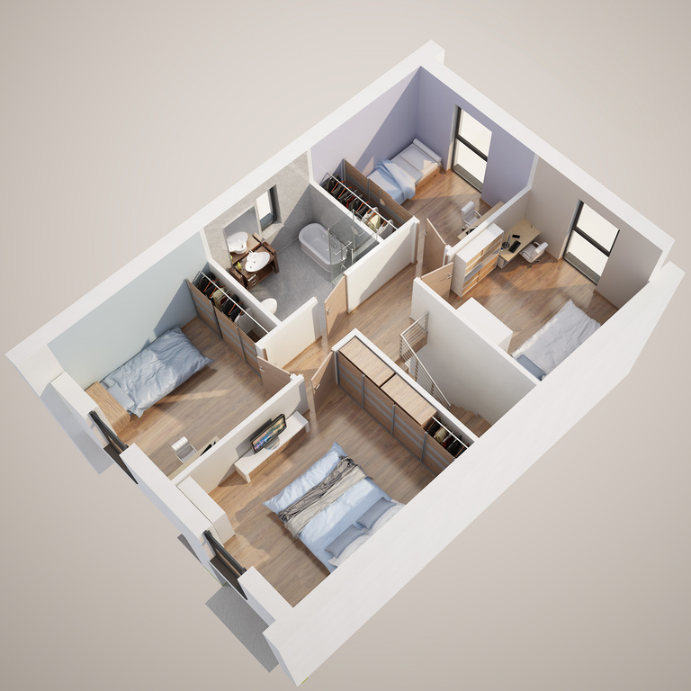 Przedstawione wizualizacje i grafiki mają charakter wyłącznie poglądowy i stanowią wyłącznie materiał pomocniczy, ułatwiający zorientowanie się w ogólnym wyglądzie oferowanej nieruchomości.