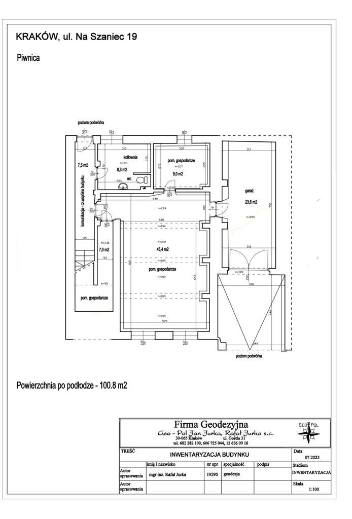 •Garaż jednostanowiskowy (część budynku usługowego)