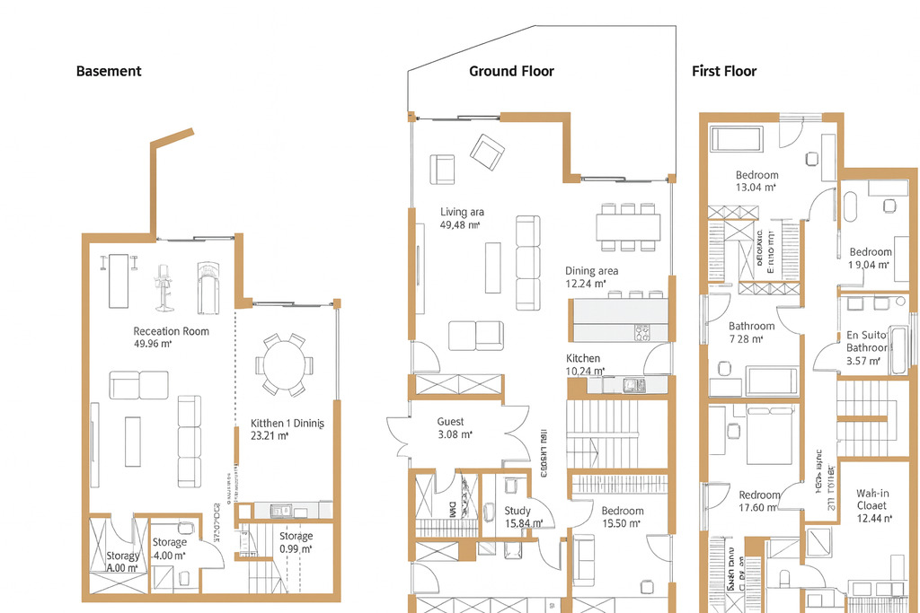 - Strefa rekreacyjna na dolnym poziomie – możliwość aranżacji jako kino domowe, siłownia, biblioteka lub sala gier,