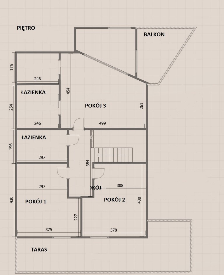 Piętro: Trzy przestronne sypialnie, dwie łazienki oraz garderoba.