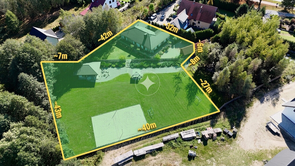 - opcja rozbudowy (np. dodatkowe domki pod wynajem) lub powiększenia części rekreacyjnej
