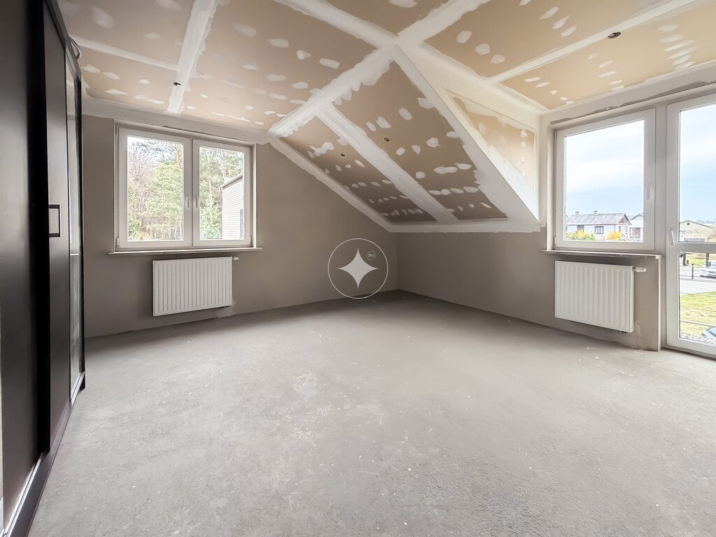 Dom oferuje funkcjonalny układ oraz duży potencjał aranżacyjny. Parter jest gotowy do zamieszkania, natomiast poddasze pozostaje do wykończenia – co daje możliwość stworzenia dodatkowej przestrzeni według własnych potrzeb!