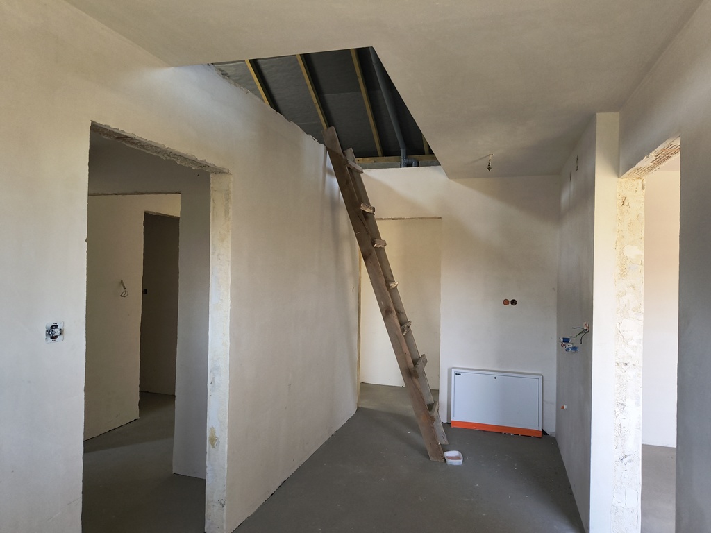 - ocieplenie ścian styropianem (15 cm), strop żelbetowy