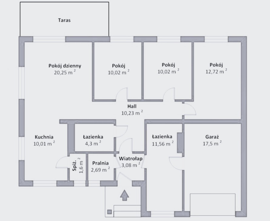 - parterowy budynek bez piwnicy, z możliwością adaptacji poddasza (po podniesieniu ściany kolankowej)