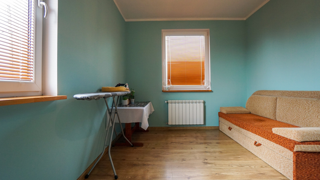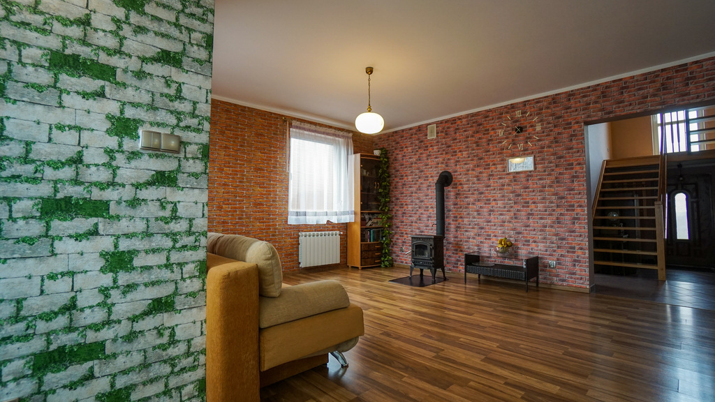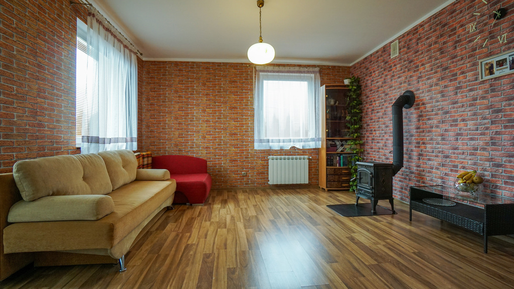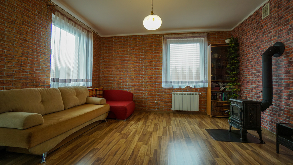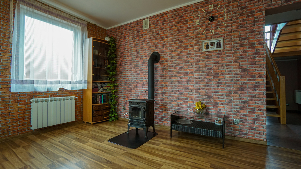 Ogrzewanie piec na węgiel/drewno (w tym ciepła woda – zbiornik na wodę 300l). Gotowe wyprowadzenie do podłączenia solarów.