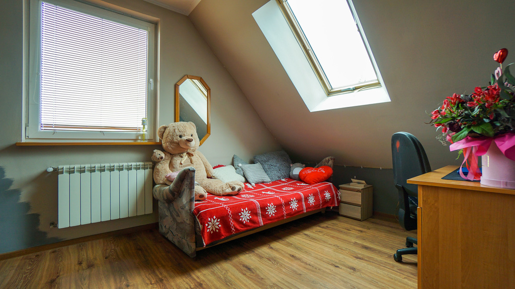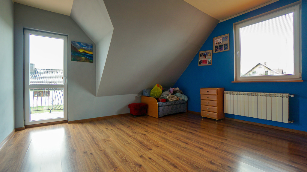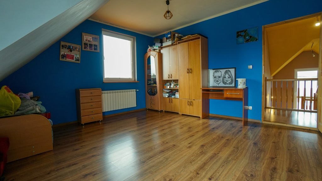 Nieruchomości o powierzchni ok. 130m2 posiada parter, piętro oraz strych.