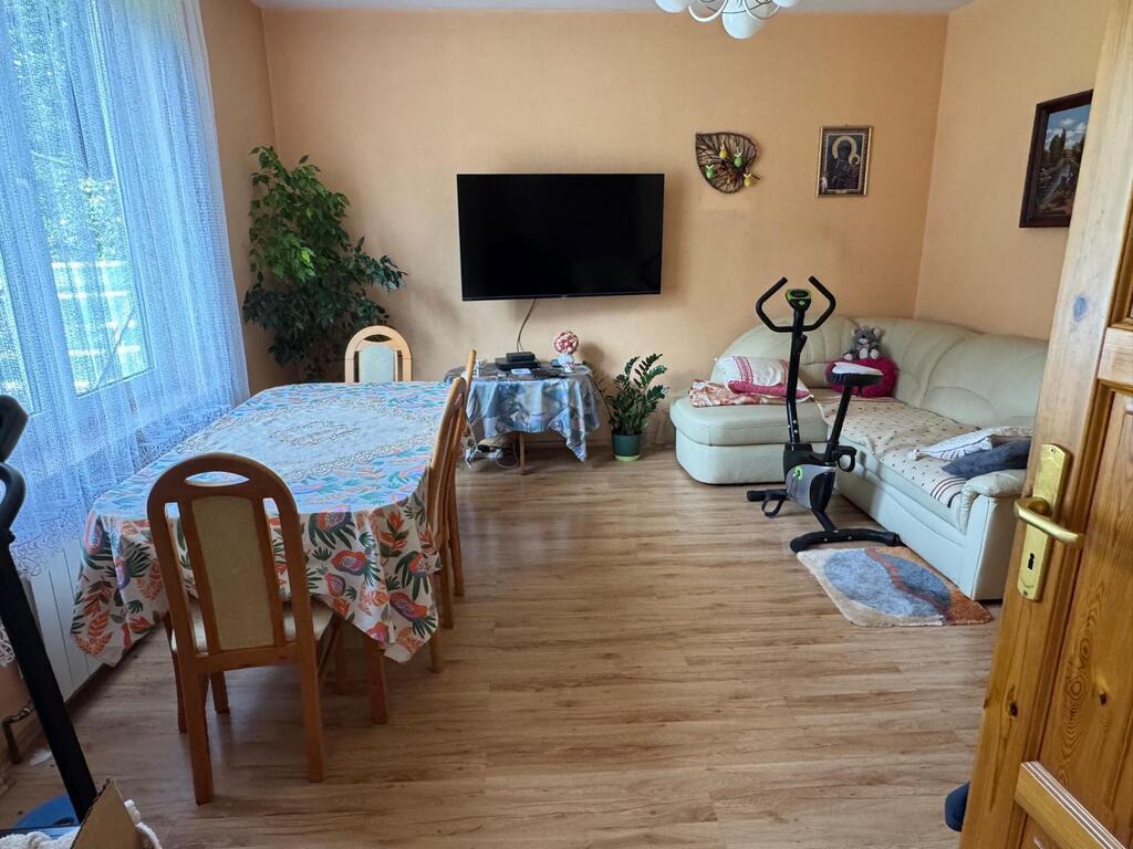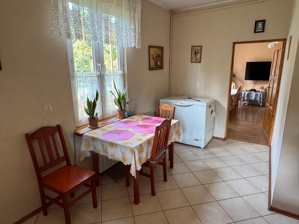 Dom jest gotowy do wprowadzenia, posiada dwa pokoje  , garderobę  , kuchnie z jadalnią , toaletę oraz  piec na drewno , węgiel  .