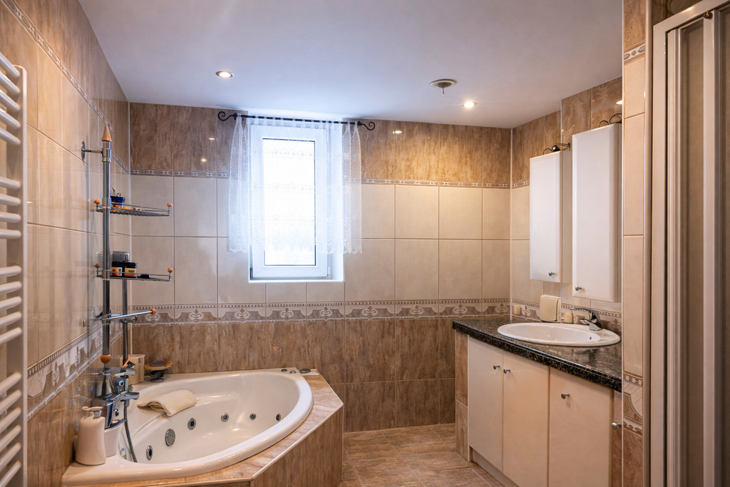 - Duża łazienka w części piwnicznej – może z powodzeniem pełnić rolę wygodnej pralni