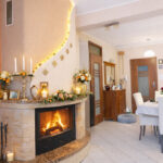 Kominek dodatkowo podkreśla ciepły, rodzinny klimat wnętrza.
